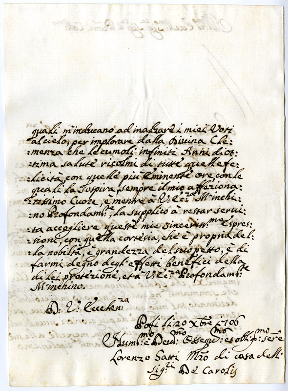Lettera di Lorenzo Satti ad Annibale Albani (1706 dicembre 20)