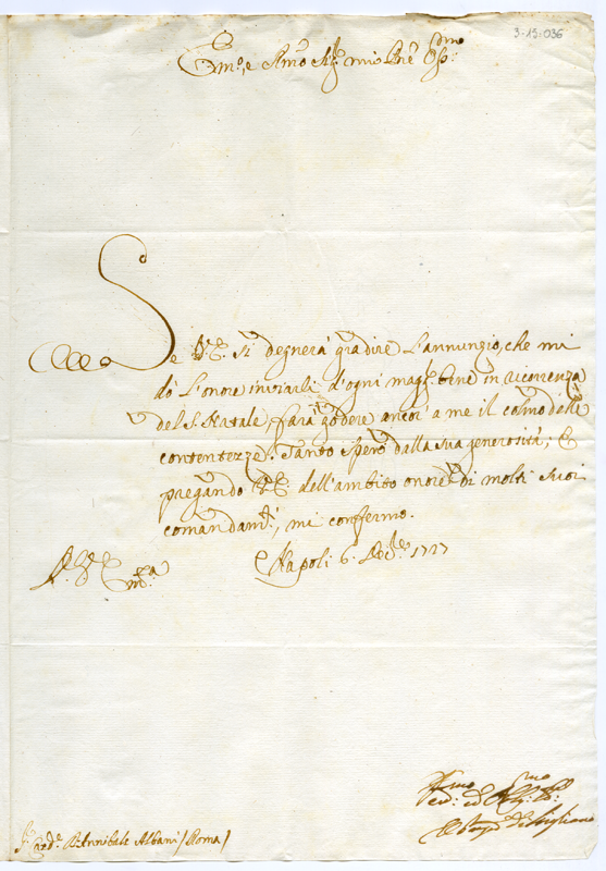 Lettera del principe di Bisignano al cardinale Annibale Albani (1727 dicembre 6)