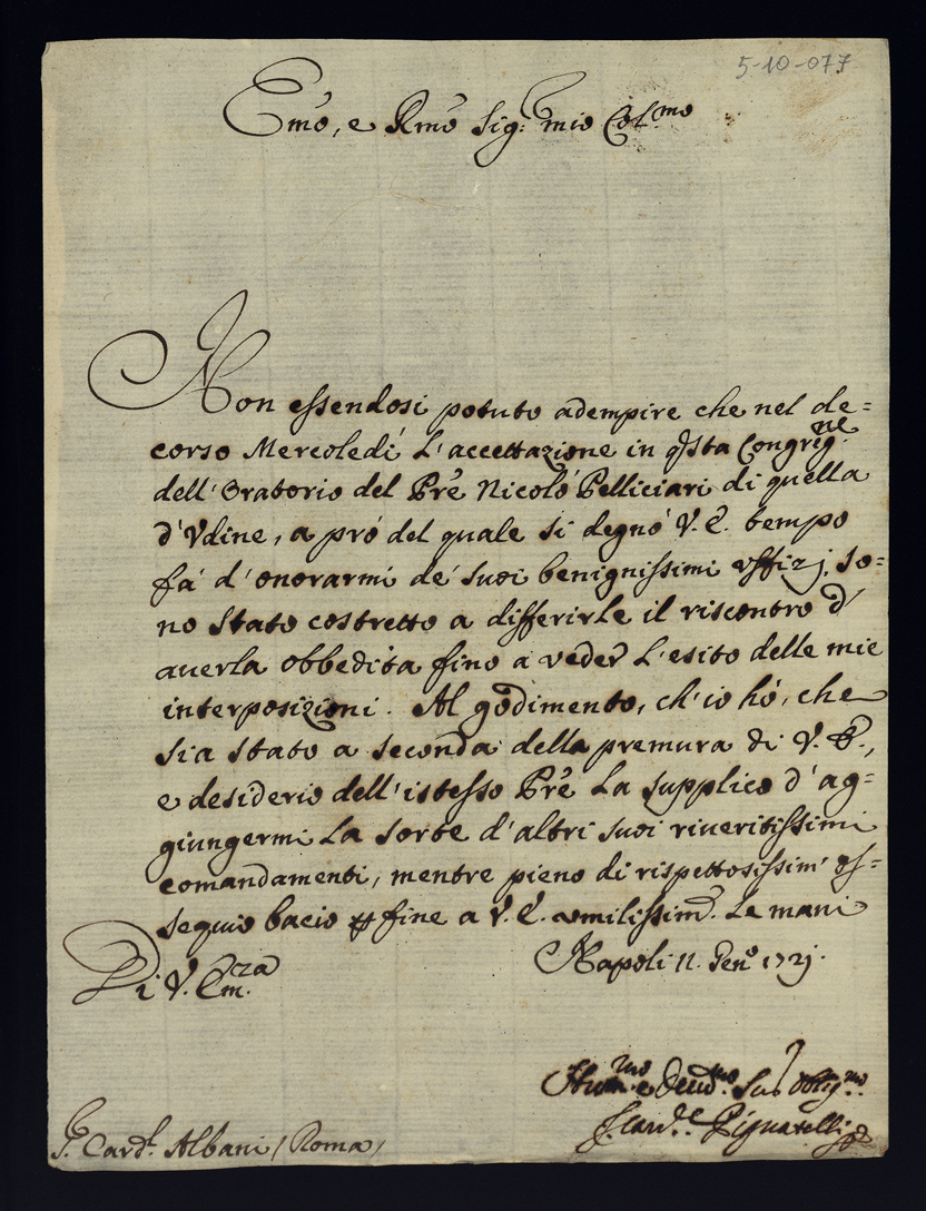 Lettere di raccomandazione. 1710 - 1723