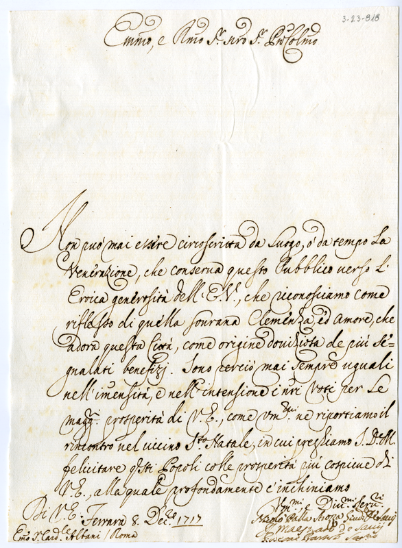 Lettera al cardinale Annibale Albani (1717 dicembre 8)