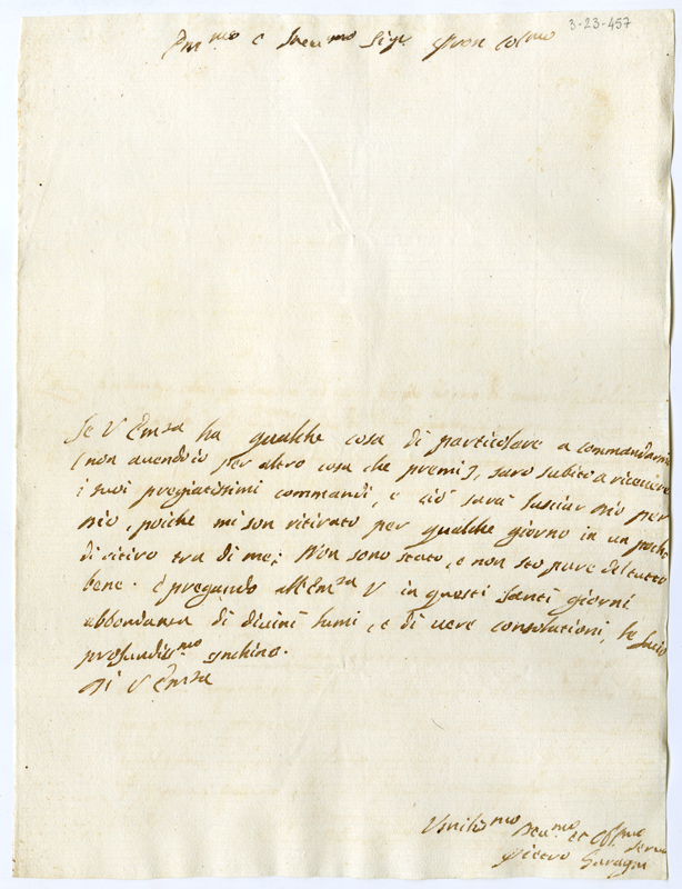 Lettera di Pietro Garagni al cardinale Annibale Albani (1717)