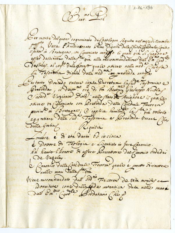 Giuseppe Nicolai chiede al pontefice di ottenere un canonicato vacante in Bretagna