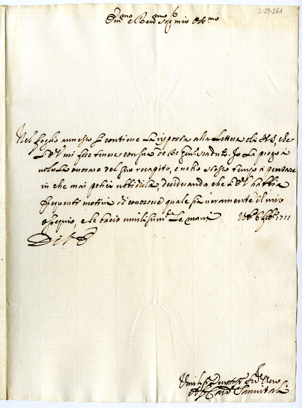 Lettera del cardinale Sanvitale ad un cardinale (1711 febbraio 6)