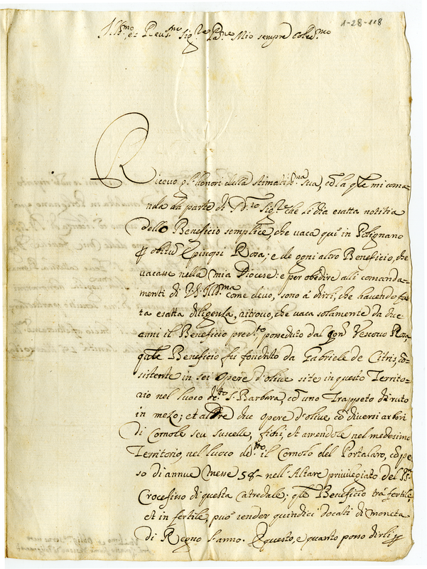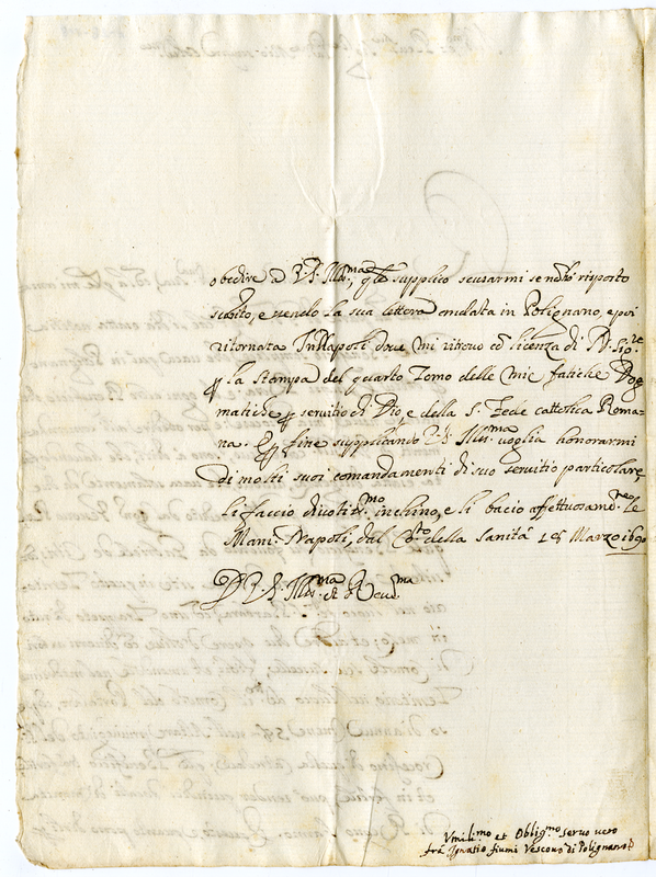 Lettera del Vescovo di Polignano a un Monsignore (1690 marzo 18)