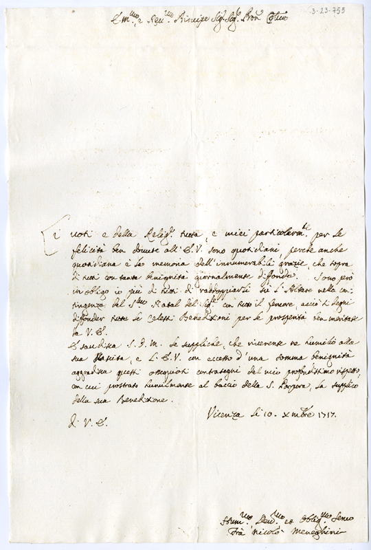 Lettera di fra Nicolò Meneghini al cardinale Annibale Albani (1717 dicembre 10)