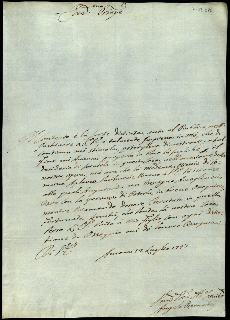 3. Lettere ricevute in Urbino dal Signor Principe Orazio Albani ultimo di questo nome nell'anno 1747