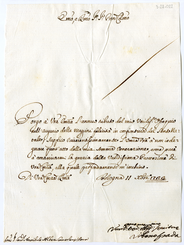 Lettera di Urbano Spada al cardinale Annibale Albani (1723 dicembre 11)