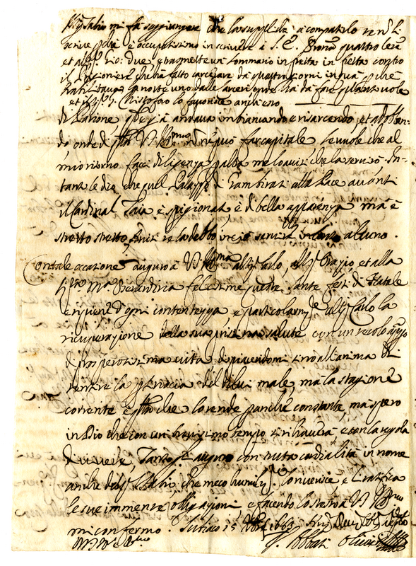 Lettera di Vincenzo Olivieri degli Abbati a Giovanni Francesco Albani (1683 dicembre 15)