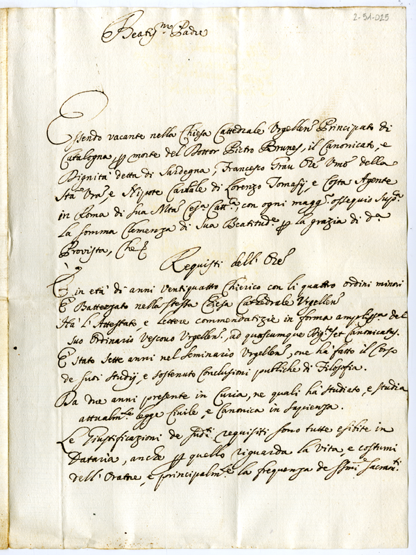 Chiede il canonicato e dignità detta di Sardegna della cattedrale di La Seu d'Urgell di Catalogna, vacante per morte di Pietro Brunes