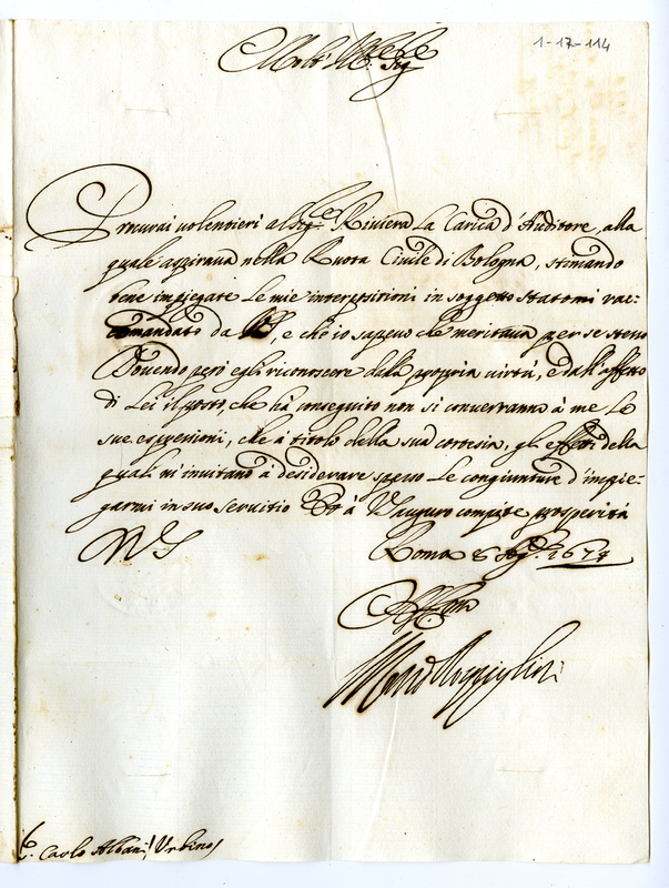 Lettera del cardinale Giacomo Rospigliosi a Carlo Albani (1674 agosto 8)