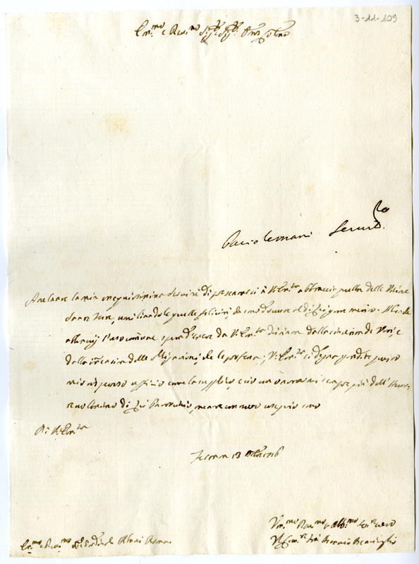 Lettera di Ascanio Bearighia al cardinale Annibale Albani (1716 dicembre 13)
