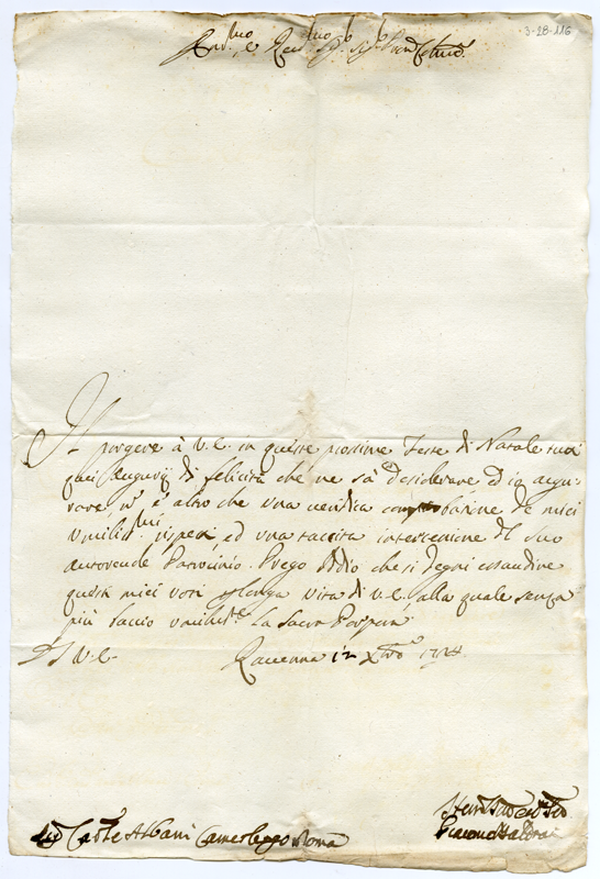 Lettera di Giacomo Baldrati al cardinale Annibale Albani (1724 dicembre 12)