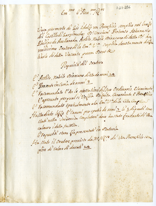 | dc.description | Atanasio Felipede de Avellaneda supplica il cardinale Prodatario che gli venga assegnato un beneficio semplice vacante per morte di Giovanni Idalgo | |