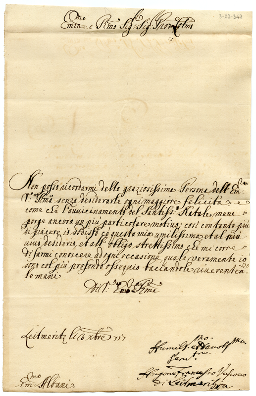 Lettera di Hugone Francesco vescovo di Leitmeritz al cardinale Annibale Albani (1717 dicembre 3)