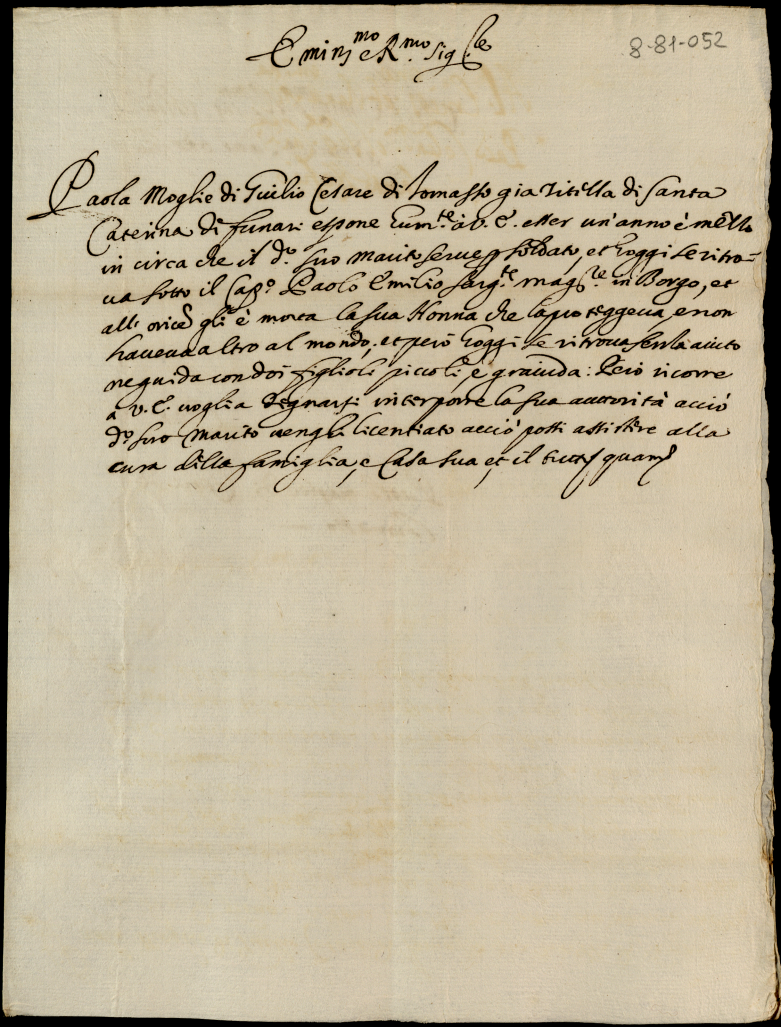 Memoriali diversi diretti al signor cardinale S. Onofrio