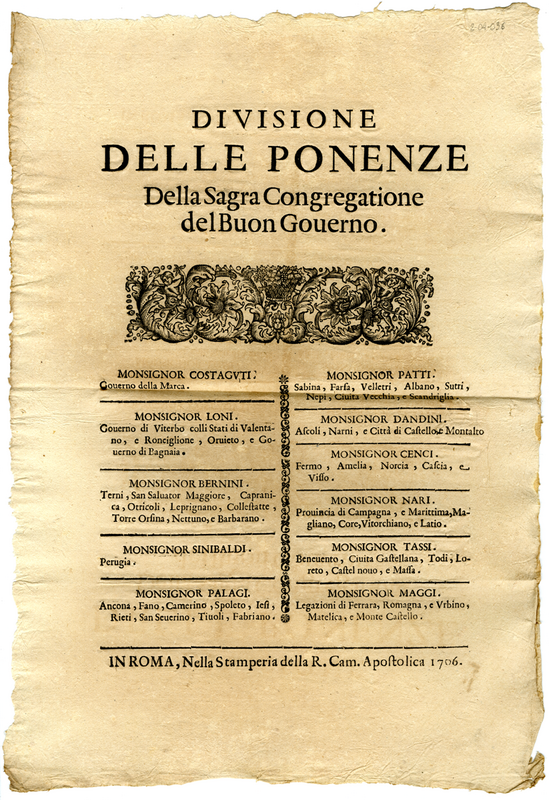 Divisione delle ponenze della Congregazione del Buon Governo (1706)