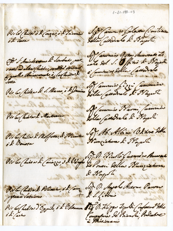 Elenco di soggetti ritenuti idonei per varie chiese del Regno di Napoli (1700-1721)