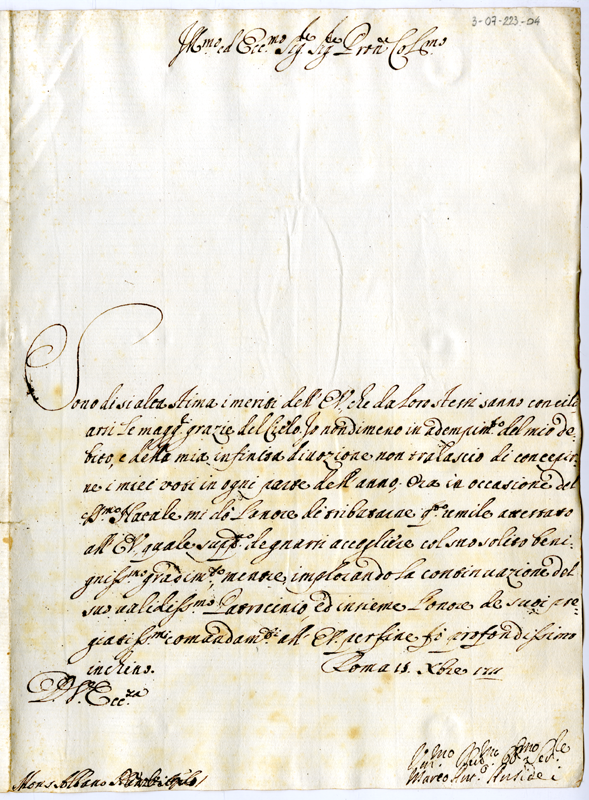 Lettera di Marco Antonio Ansidei ad Annibale Albani (1711 dicembre 19)