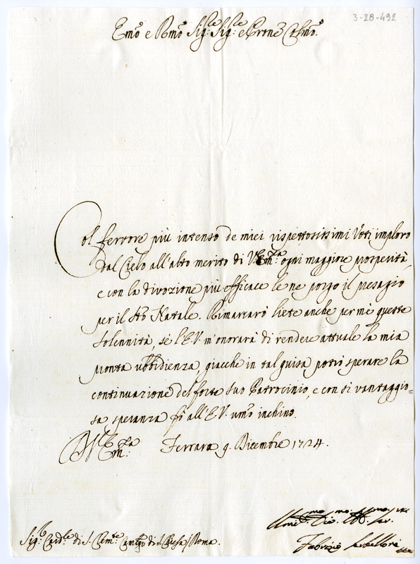 Lettera di Fabrizio Serbelloni al cardinale Annibale Albani (1724 dicembre 9)