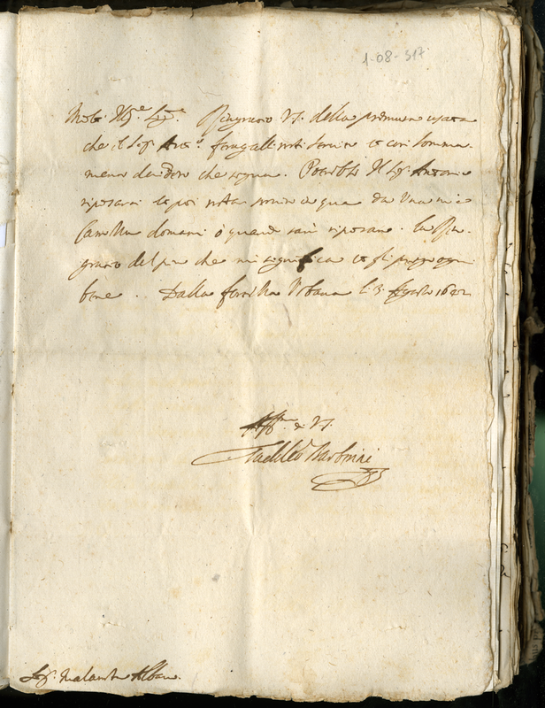 Lettera di Barberini Taddeo a Malatesta Albani (1642 agosto 3)