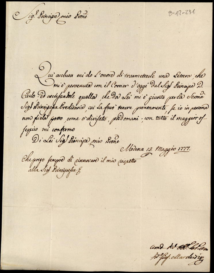 Lettere ricevute in Urbino nella permanenza in Urbino nei mesi di maggio, giugno e luglio 1777