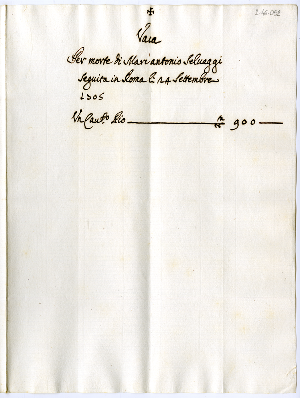 Canonicato vacante per morte di Marc'Antonio Selvaggi (1705 settembre 24)