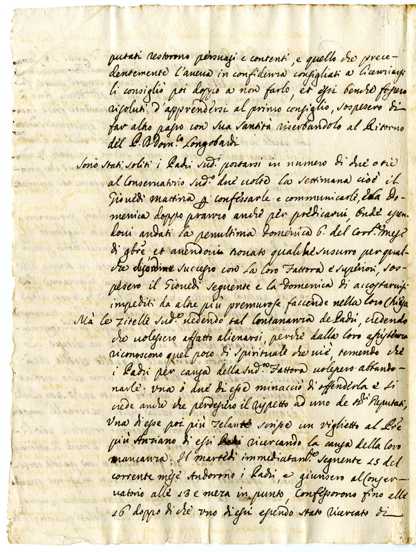 Esposto contro la decisione di Monsignor Bonaventura di licenziare i detti padri dall'impiego nell'azienda Spirituale delle Zoccolette