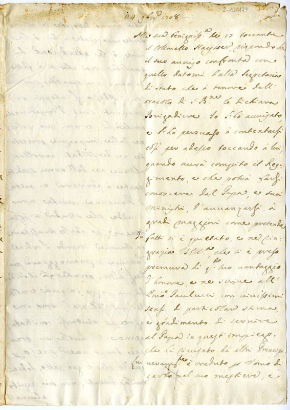 Sulle pretese di carriera militare del Colonnello Hjssen (1708 novembre 24)