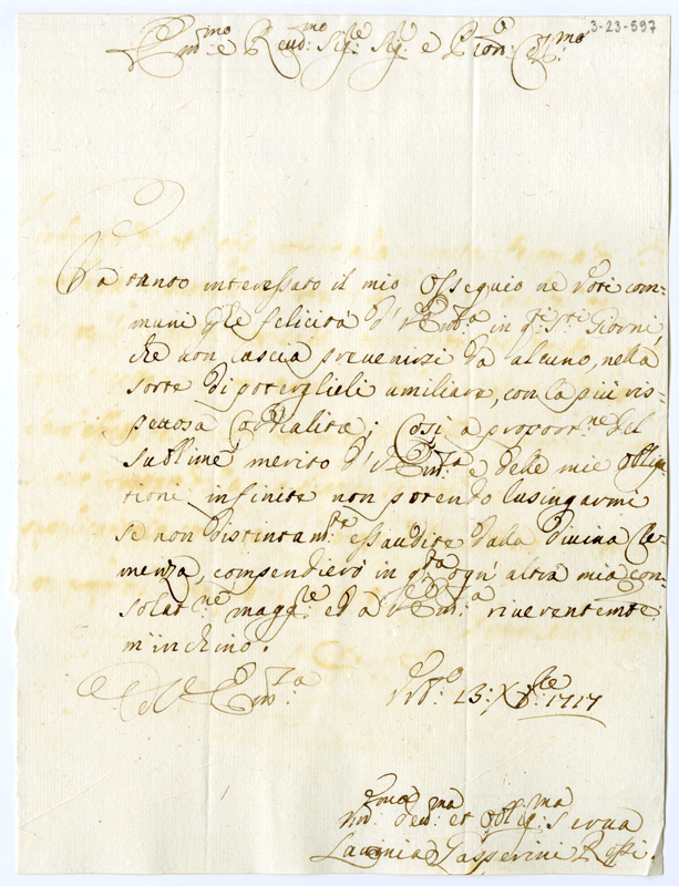 Lettera di Lavinia Gasperini Rossi al cardinale Annibale Albani (1717 dicembre 13)
