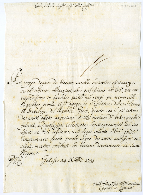 Lettera del capitolo e canonici di Gallese al cardinale Annibale Albani (1721 dicembre 24)