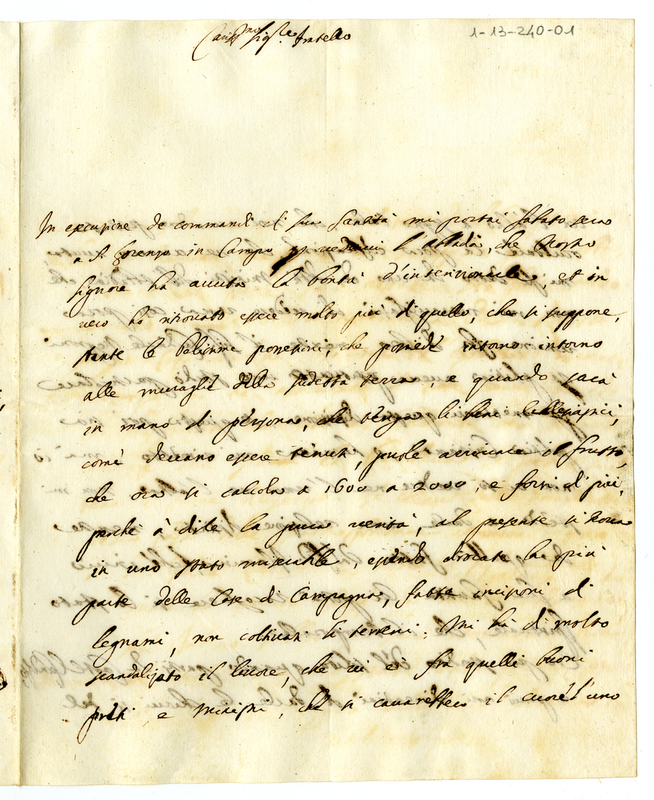 Espone al fratello la cattiva conduzione dei beni ecclesistici dell'abbazia di San Lorenzo in Campo e il disonorevole comportamento esistente fra i preti e i ministri interessati. Altre notizie