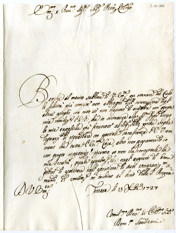 Lettera di Domenico Sandreani al cardinale Annibale Albani (1727 dicembre 13)