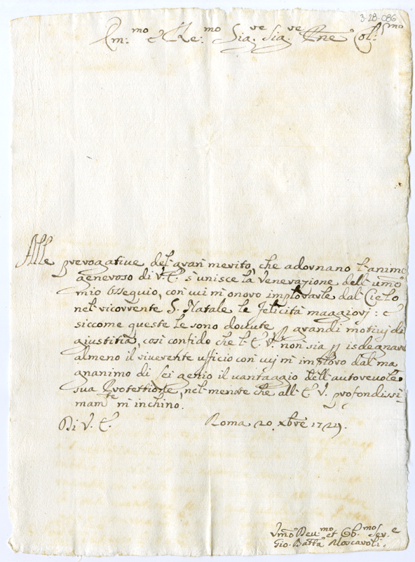 Lettera di Giovanni Battista Moscaroli al cardinale Annibale Albani (1724 dicembre 20)
