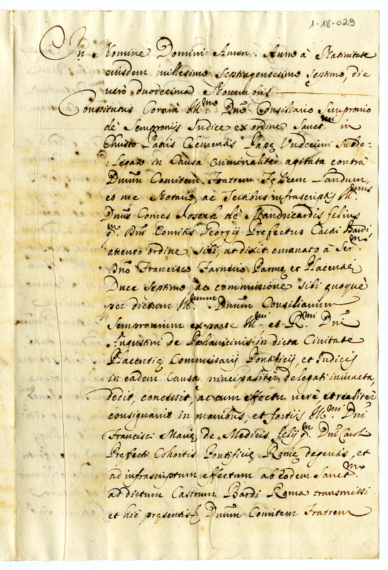 Custodia del cavaliere Felice Landi (1707 novembre 12)