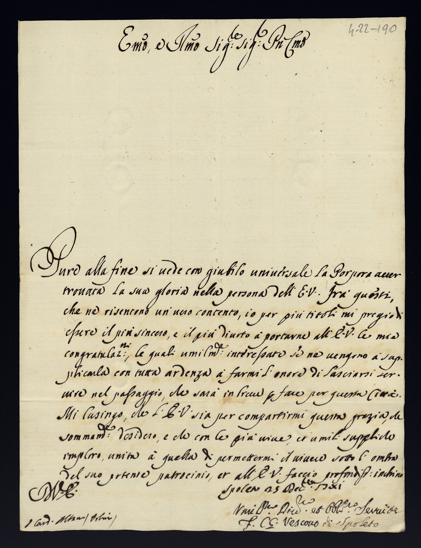 Lettere di congratulazioni per la promozione di Sua Eccellenza al Cardinalato