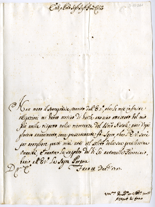Lettera di Alessandro vescovo di Fano al cardinale Annibale Albani (1727 dicembre 8)