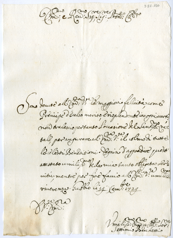 Lettera di Settimio Becchetti al cardinale Annibale Albani (1729 dicembre 19)