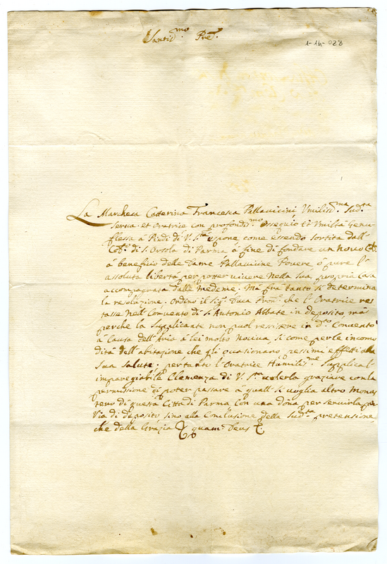 La marchesa Caterina Francesca Pallavicini chiede di poter essere trasferita dal convento di Sant'Antonio Abate