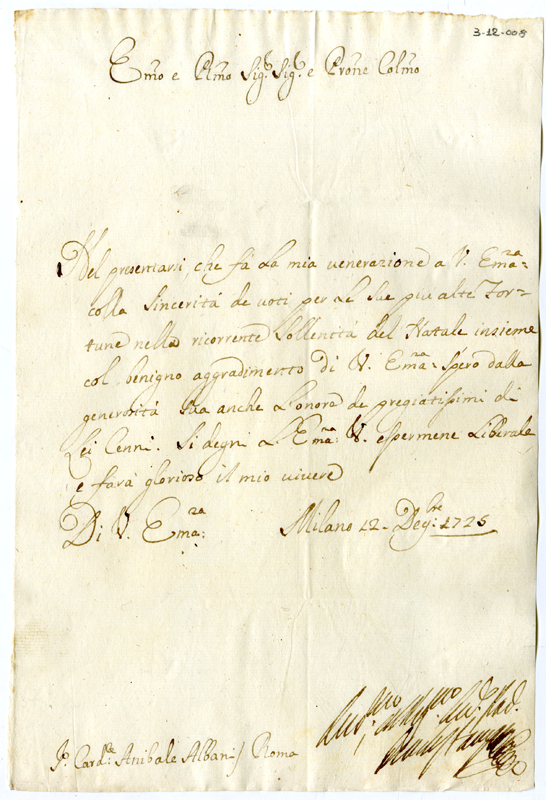 Lettera al cardinale Annibale Albani (1725 dicembre 12)