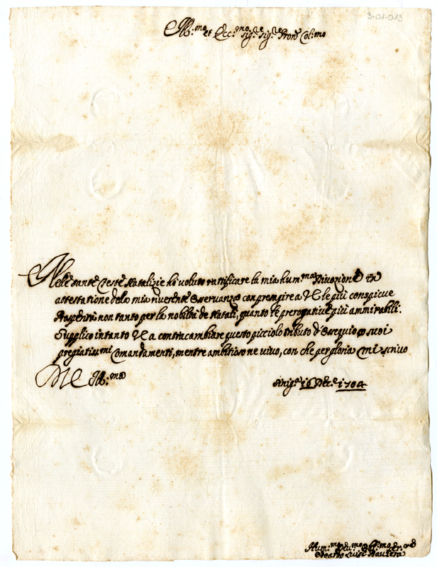 Lettera di Odoardo Luigi Baviera ad Annibale Albani (1704 dicembre 16)