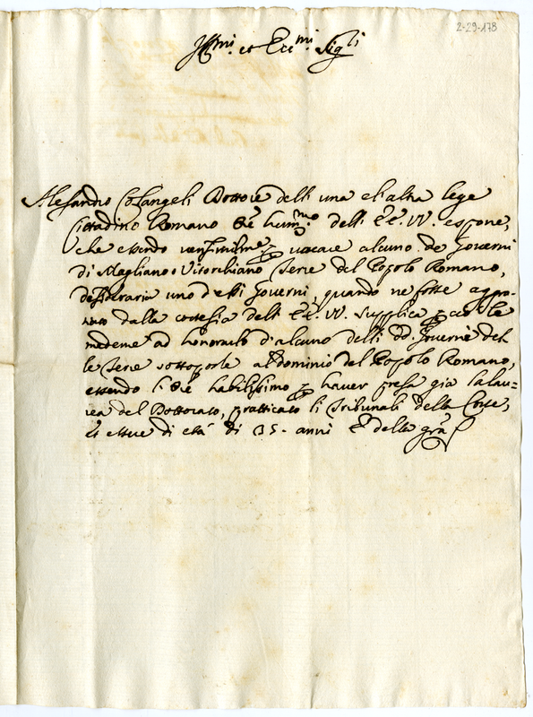 Chiede di poter avere il governatorato di Magliano Sabina o Vitorchiano verosimilmente presto vacanti
