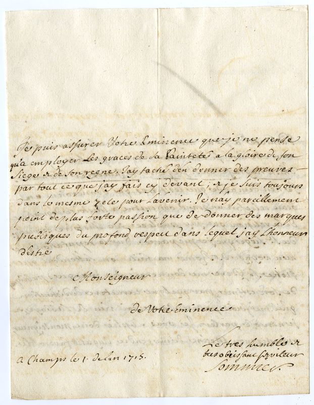 Lettera al Cardinale Annibale Albani (1715 gennaio 1)