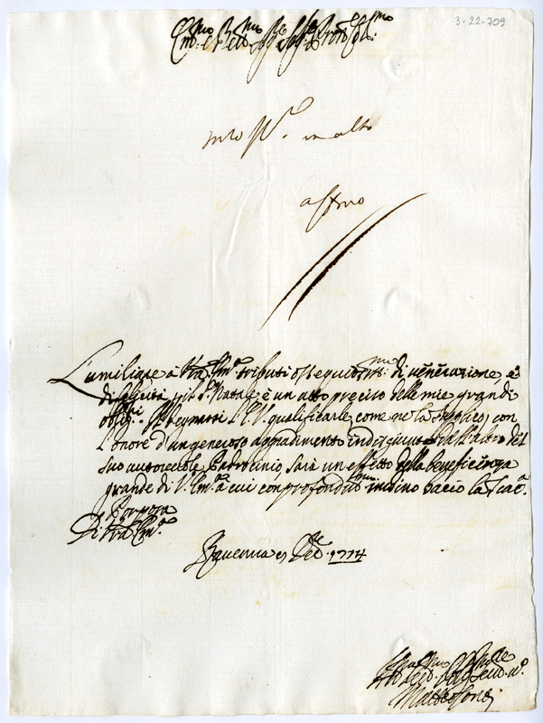Lettera di Matteo Conti al cardinale Annibale Albani (1714 dicembre 8)