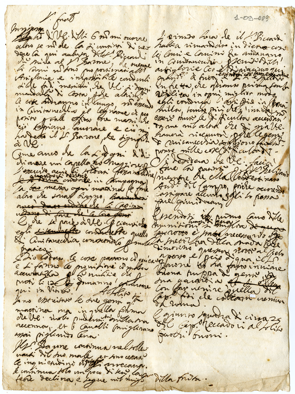 Minuta di lettera scritta da Malatesta Albani con varie notizie