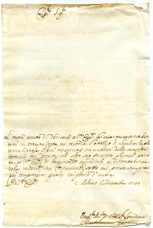 Lettera di Bartolomeo Olivarri al cardinale Annibale Albani (1730 dicembre 6)