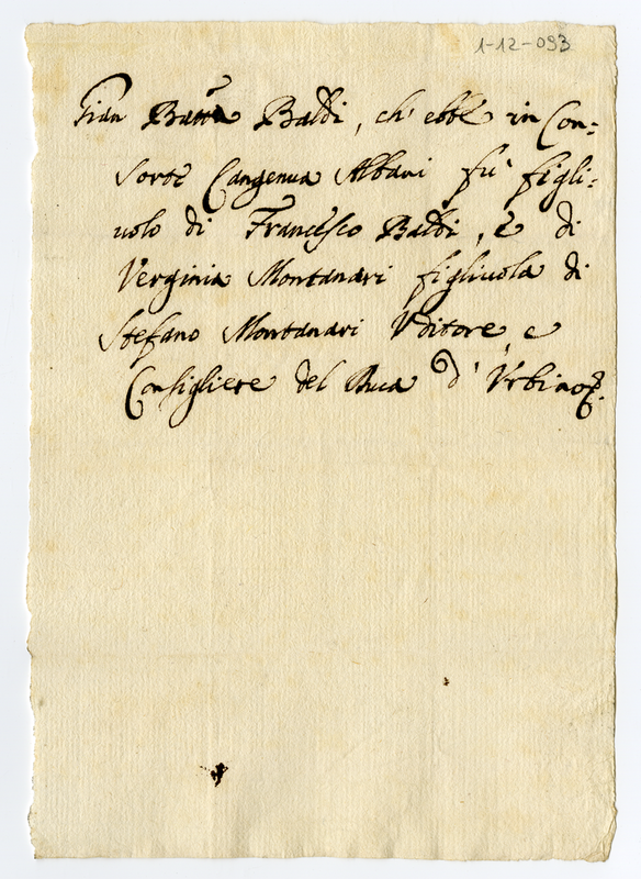 Biglietto con memoria storica su Gianbattista (Giovan Battista) Baldi
