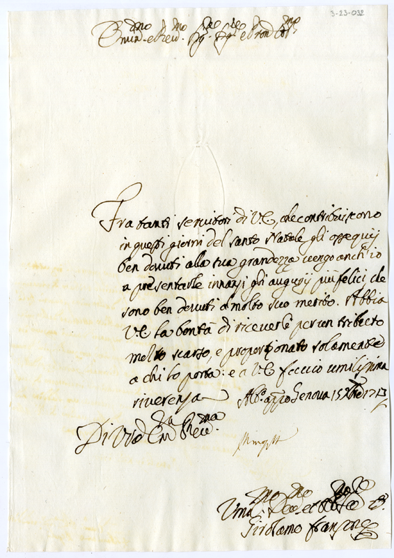 Lettera di Girolamo Fransone al cardinale Annibale Albani (1713 dicembre 15)