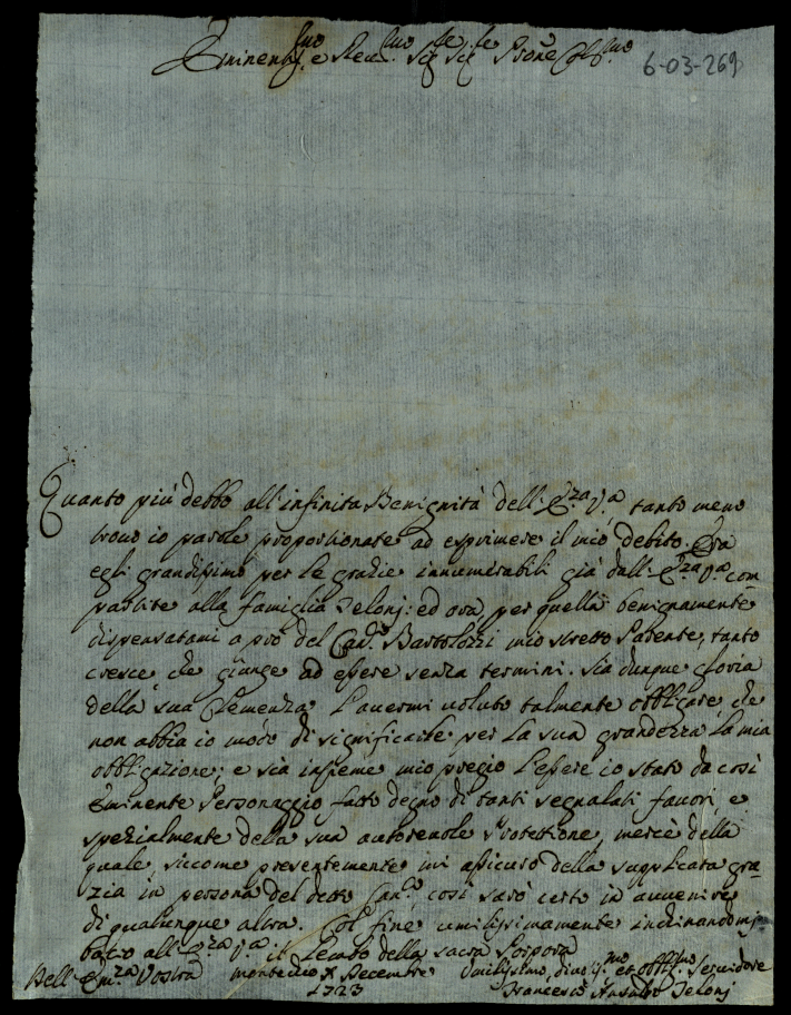 Lettere di complimento e di negozio. 1723. Semestre secondo