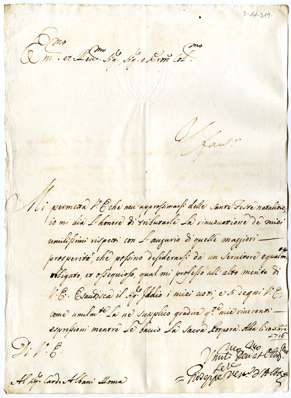 Lettera di Giuseppe vescovo d'Alba al cardinale Annibale Albani (1716 dicembre 10)