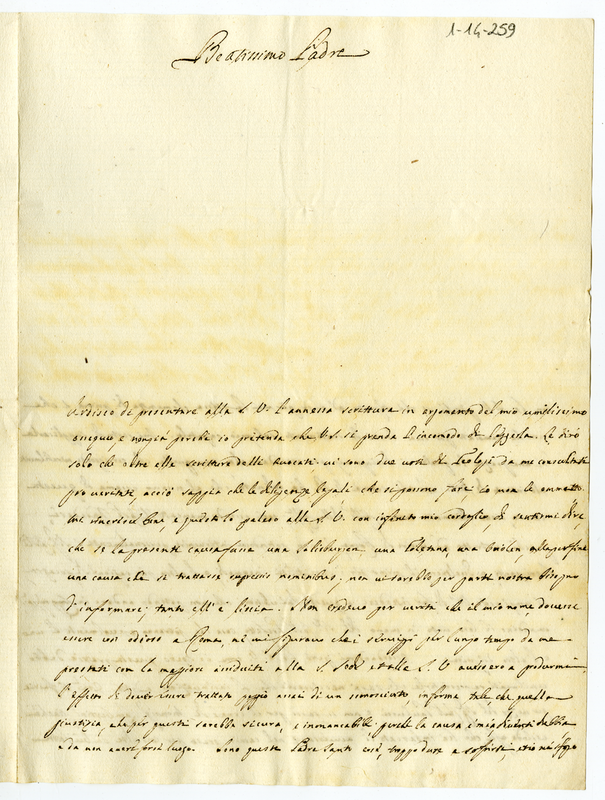 Lettera di Giulio Imperiali a Clemente XI (1719 novembre 2)